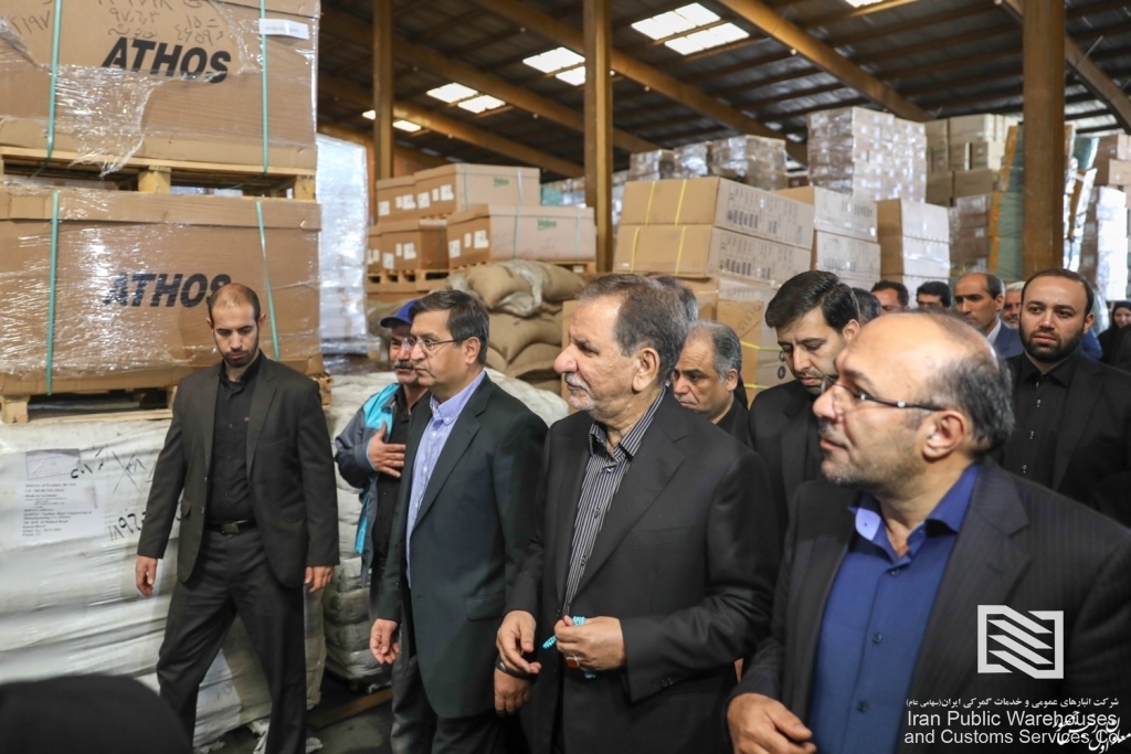 به گزارش پایگاه اطلاعرسانی شرکت سهامی انبارهای عمومی و خدمات گمرکی ایران به نقل از پایگاه اطلاعرسانی معاون اول ریاست جمهوری و گمرک جمهوری اسلامی، دکتر «اسحاق جهانگیری» معاون اول رییسجمهور صبح روز شنبه، 31 شهریور 1397 با همراهی وزرای صنعت، معدن و تجارت، بهداشت، درمان و آموزش پزشکی، رییسکل بانک مرکزی، سرپرست وزارت امور اقتصادی و دارایی، رییس ستاد مبارزه با قاچاق کالا و ارز، استاندار تهران و رییس سازمان ملی استاندارد ضمن بازدید از انبارهای عمومی و خدمات گمرکی تهران در گمرک تهران، با توضیحات رییسکل گمرک جمهوری اسلامی ایران در جریان مسایل و مشکلات ترخیص کالا قرار گرفت.